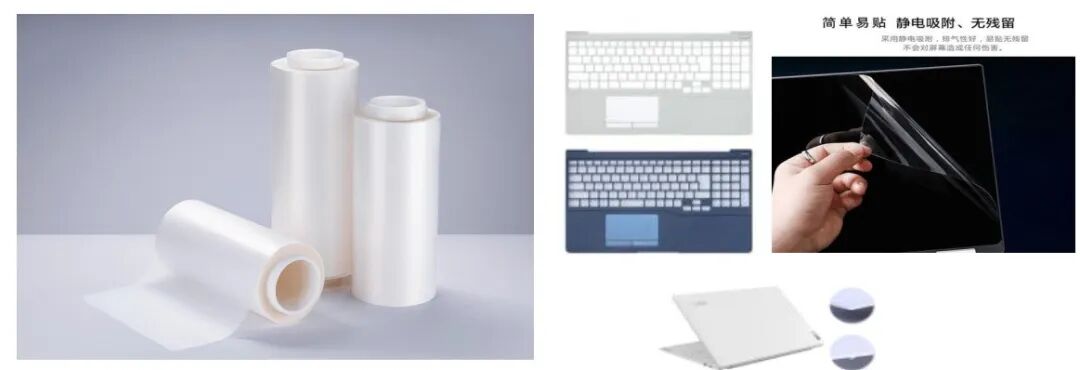 (PO膜产品应用:模内转印/模外转印薄膜基材,笔记本电脑,智能手机,汽车内件装饰,家电产品。)